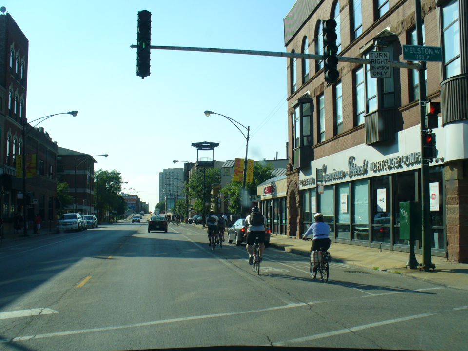 Rush-hour bike traffic on Milwaukee Avenue