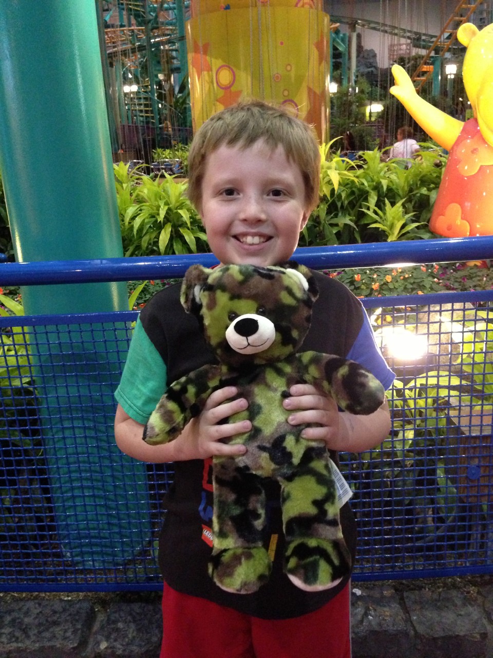 Boy and bear are happy