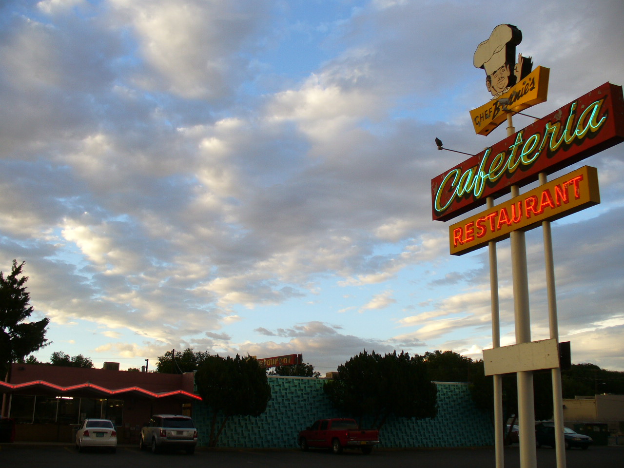 Zigzag neon, googi-esque architecture, low prices
