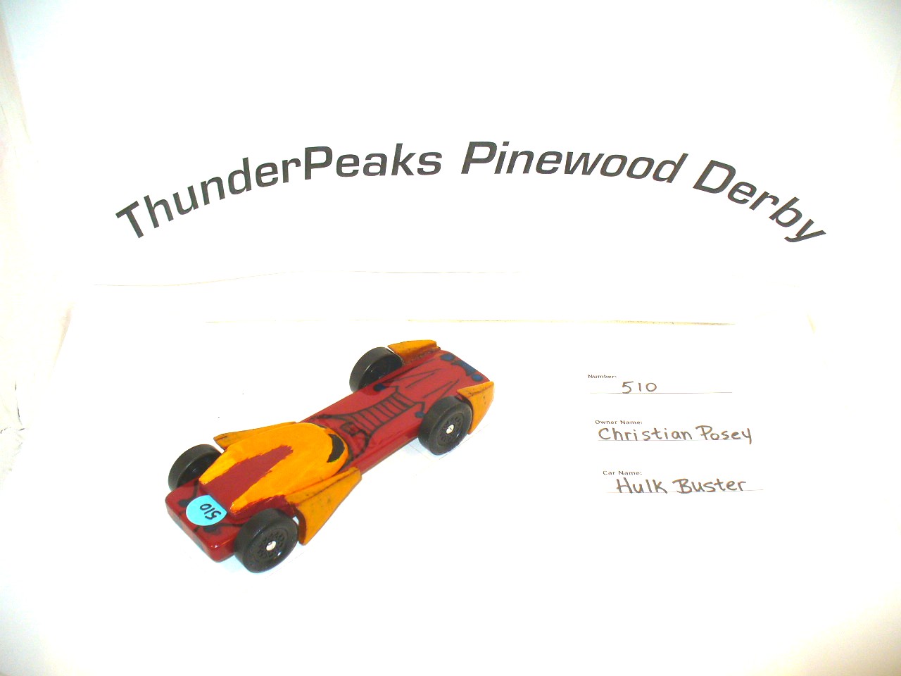 Christian Posey, Pack 918, Hulk Buster - 1st Place, Arrow of Light (Webelos 2) - 3rd Place, ThunderPeaks Pinewood Derby