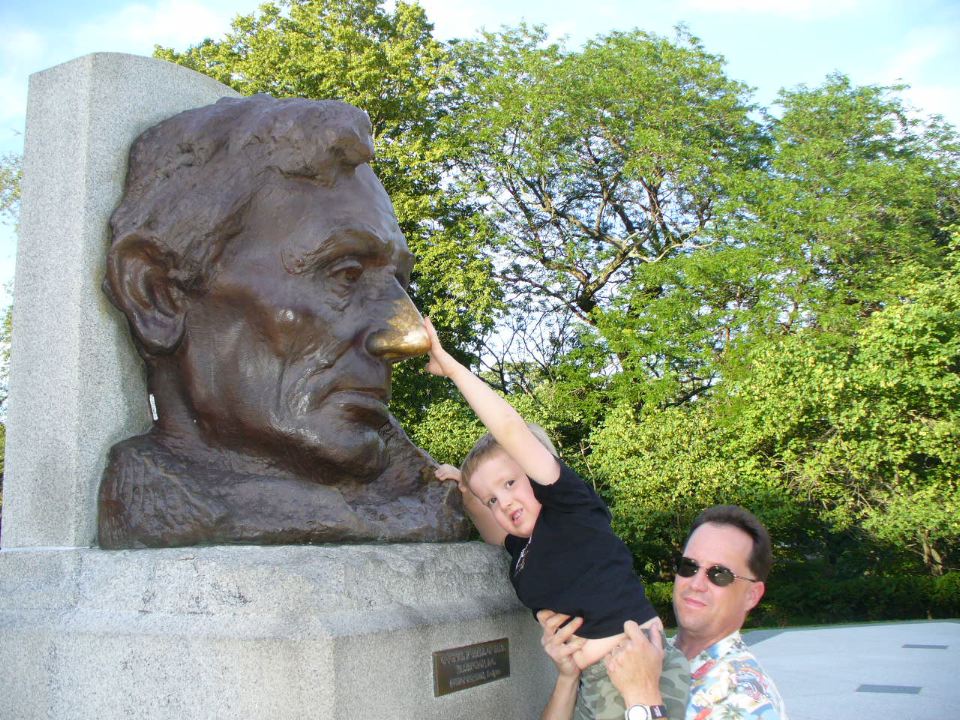 Rub Abe's nose for luck
