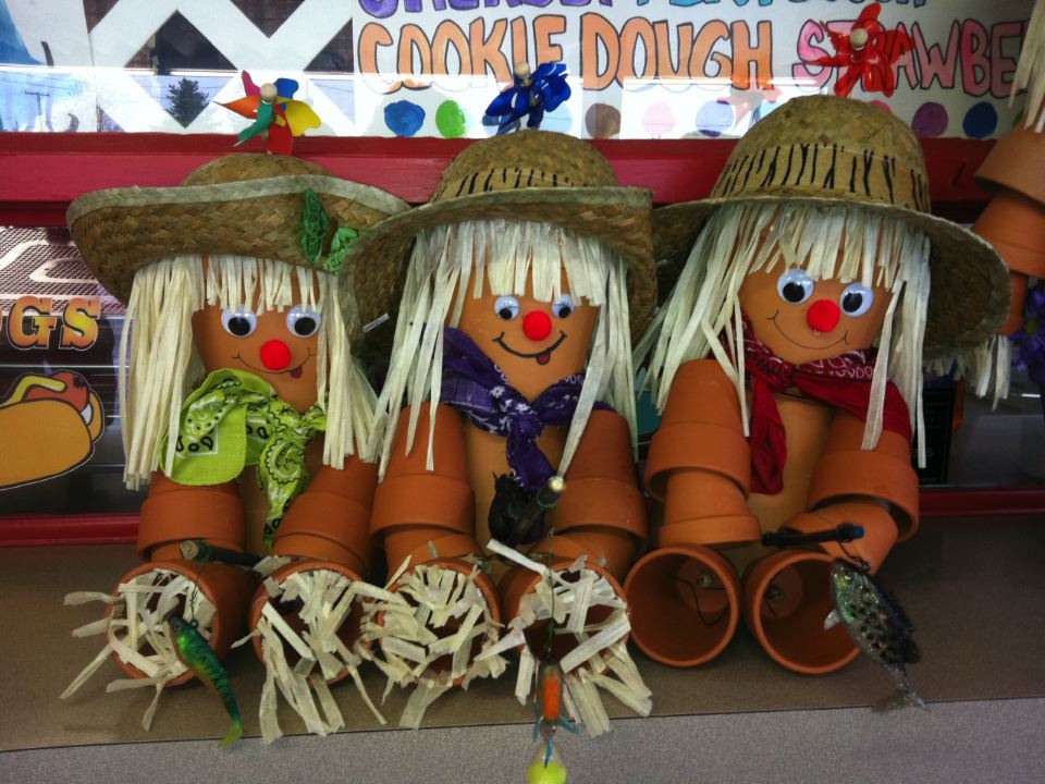 Happy flowerpot people at the Baraga Drive-In