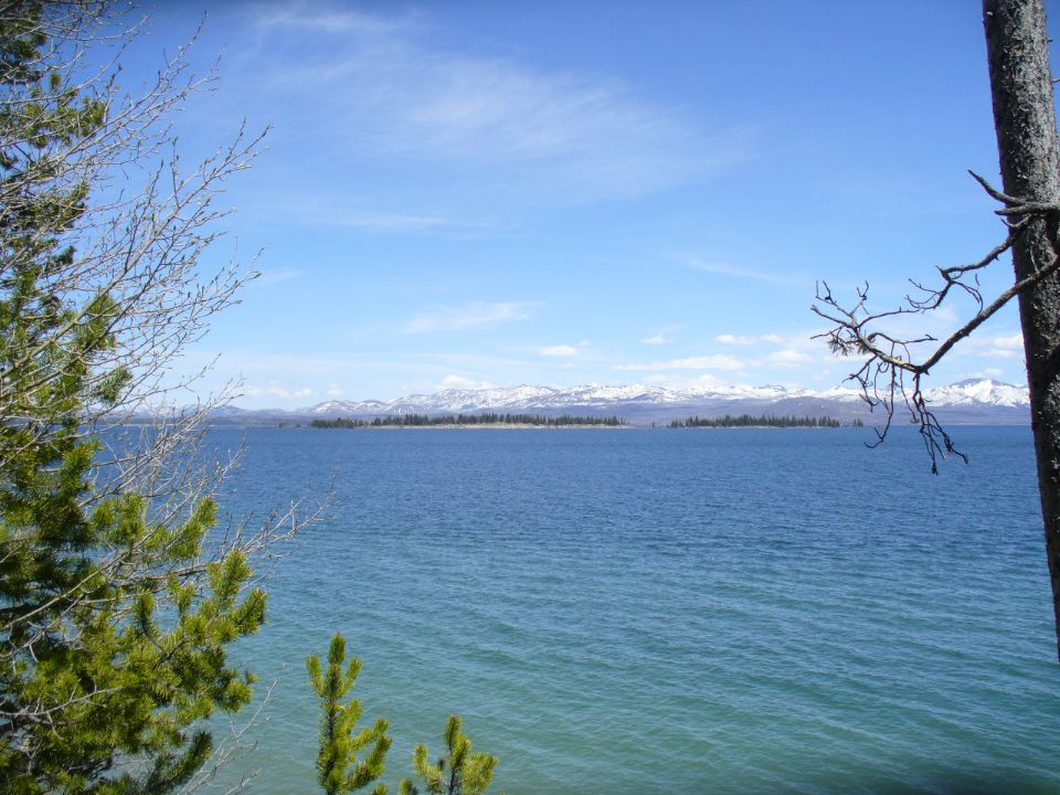 Blue lake under white peaks
