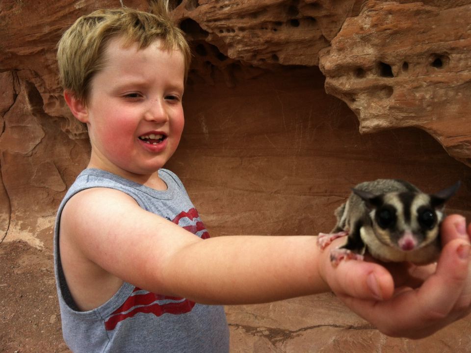 Meeting a new friendly sugar glider also traveling the highway