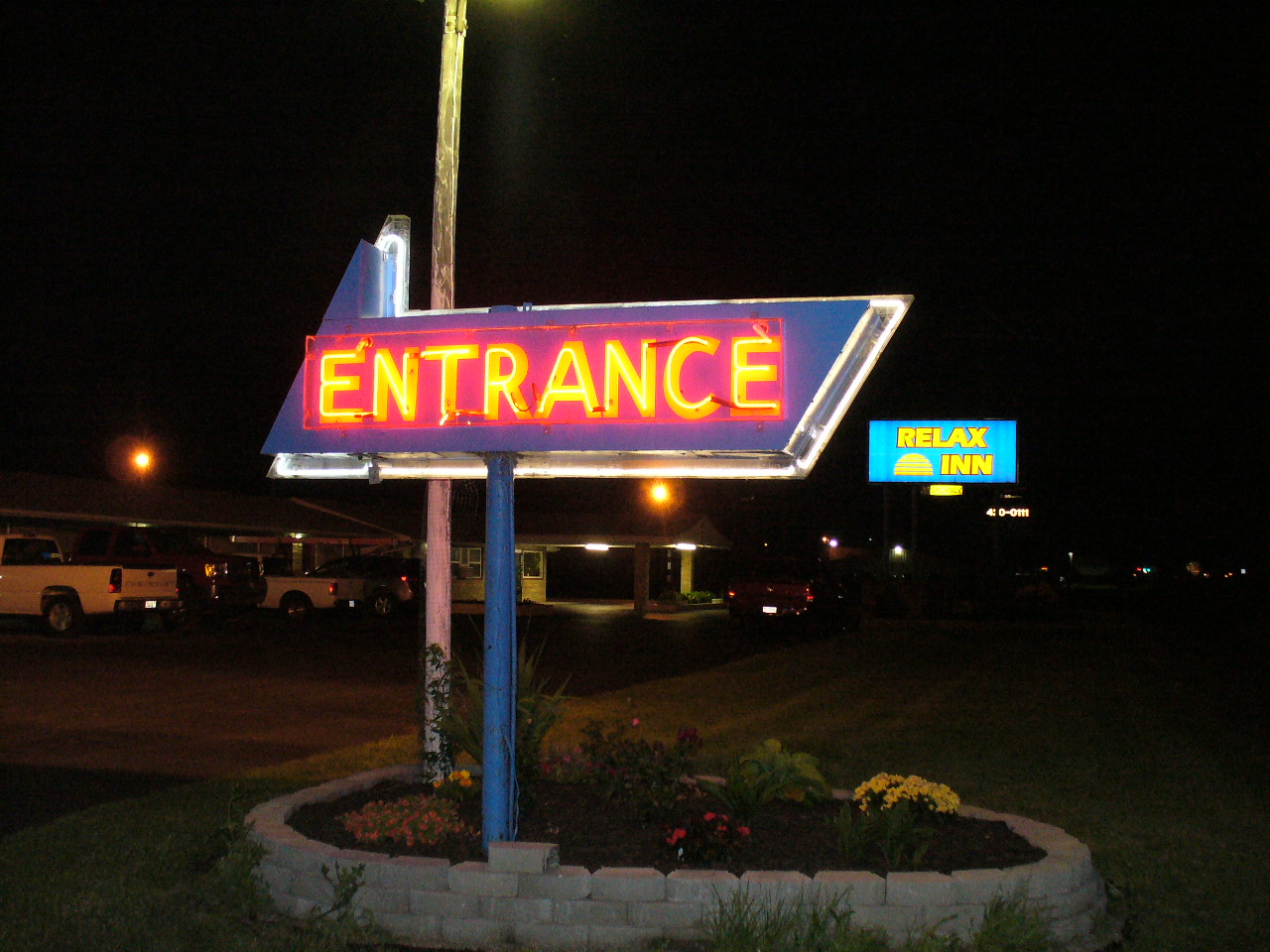 Neon guides us to the Relax Inn