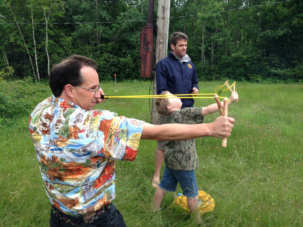 Thwapping the targets with our marbles