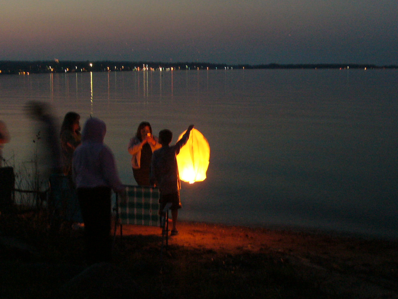 Launching the lanterns from the shoreline
