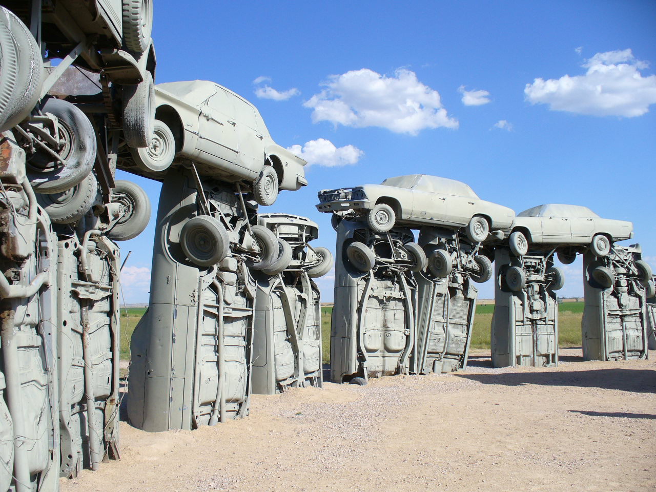 The cars curve in the cornfields
